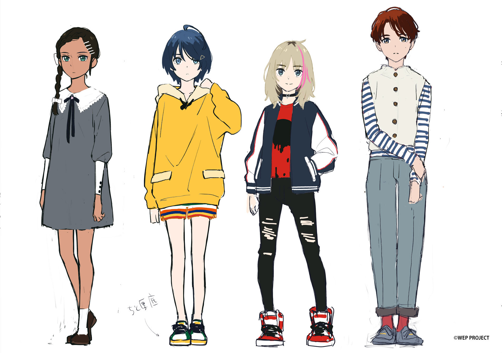 The character creation process revolved around Mr. Wakabayashi, Ms. Takahashi, and animation producer Mr. Shouta Umehara, and began with the protagonist Ai Ohto. At first, Ms. Takahashi focused on Ai's identity as a hikikomori and drew her expressions very dark, but Mr. Wakabayashi said, "Although Ai ended up as a hikikomori, ultimately she's a girl who's very curious and interested in many things." He thought it would be best not to rely on superficial character attributes. After that, he and Ms. Takahashi had discussions where they compared their opinions to bring out Ai's fundamental cheerful disposition.